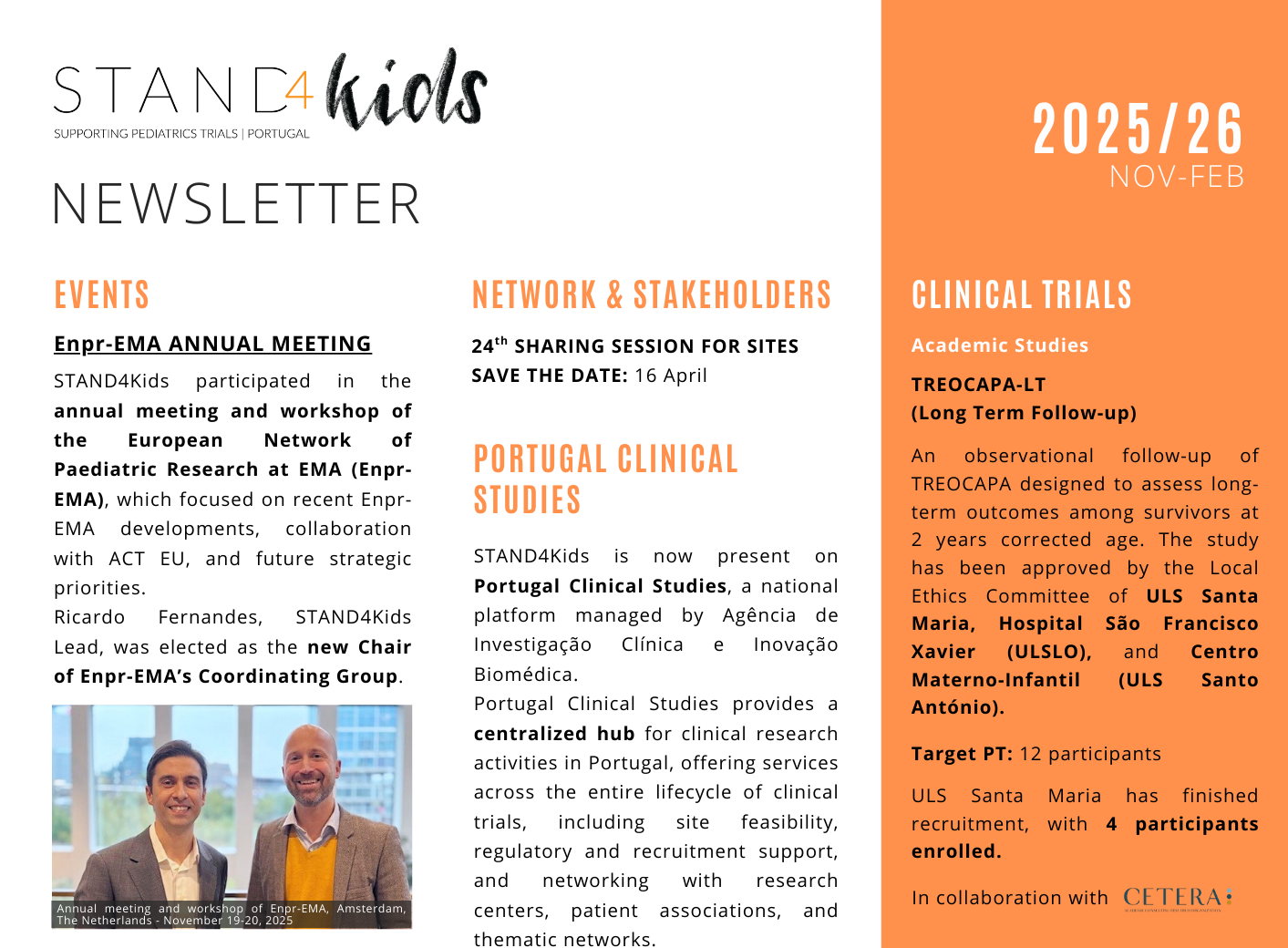 This month’s newsletter highlights our activities from November 2025 to February 2026. In this edition, we share the events where STAND4Kids was present and highlight our role in Portugal Clinical Studies as a thematic network and service provider. For more information about Portugal Clinical Studies, visit: https://portugalclinicalstudies.com/ Download [HERE].Continue Reading